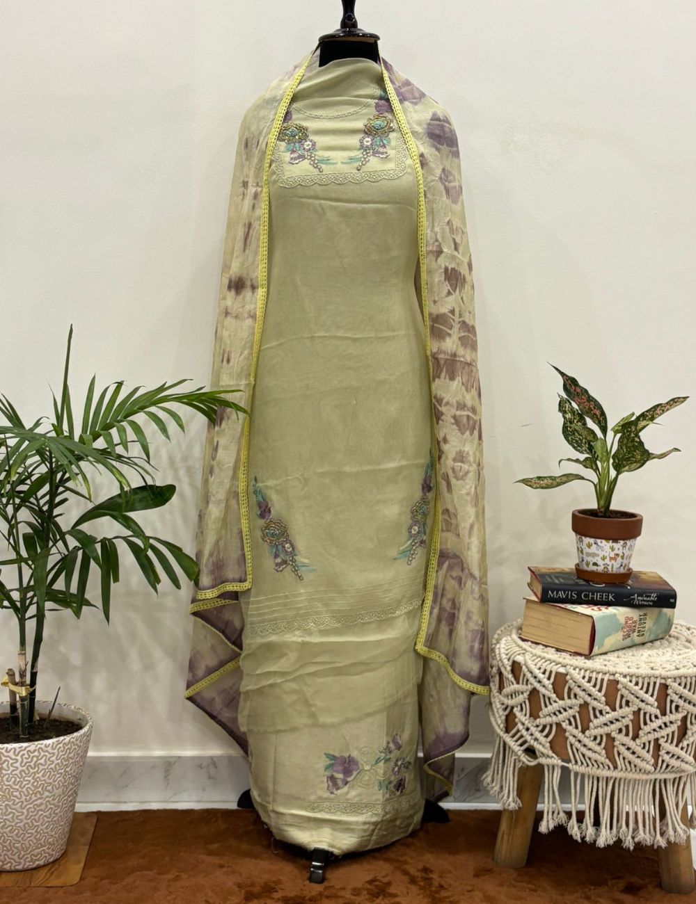 Elevate your traditional wardrobe with this exquisite Salwar Suit Set, crafted from a luxurious Burberry silk blend fabric. The soft, subtle sage green/pistachio color of the kurta (tunic) offers a sophisticated, understated elegance perfect for daytime events, festive occasions, or evening gatherings.