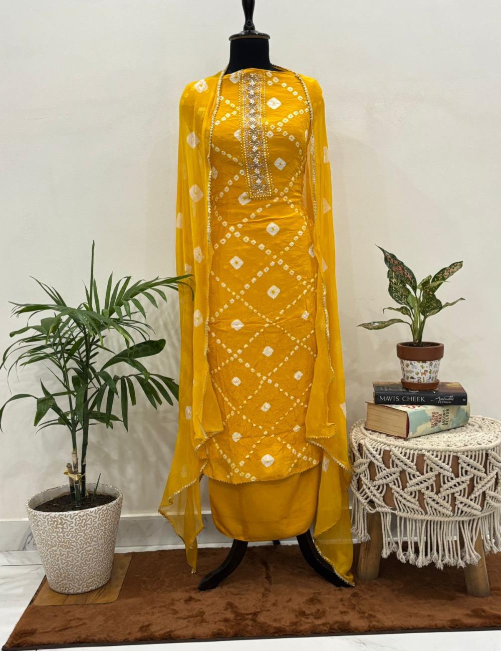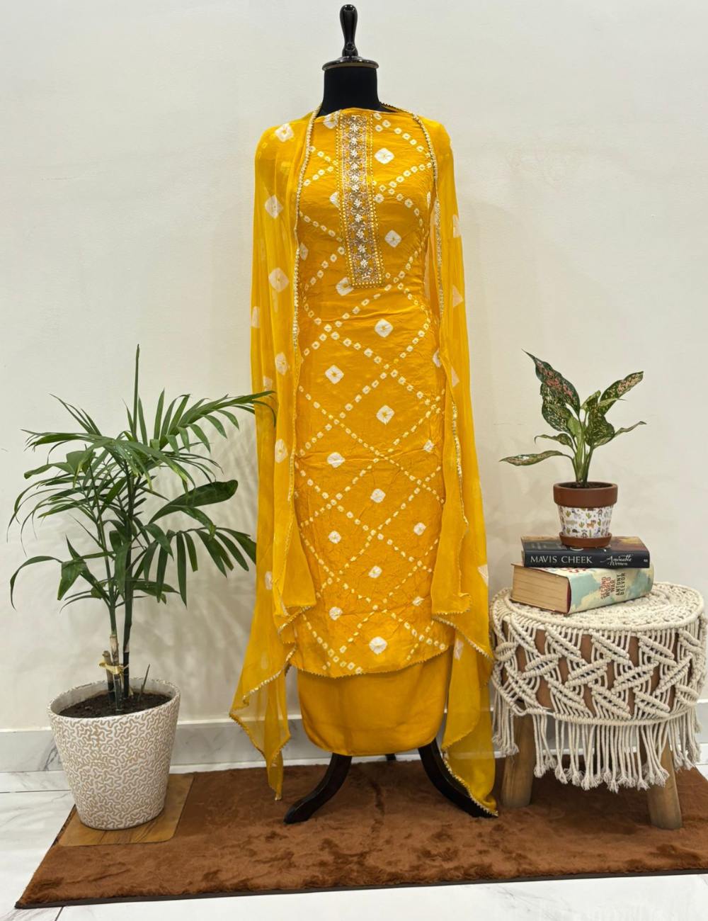 Be the first to review “Vibrant Yellow Bandhani Suit Set”